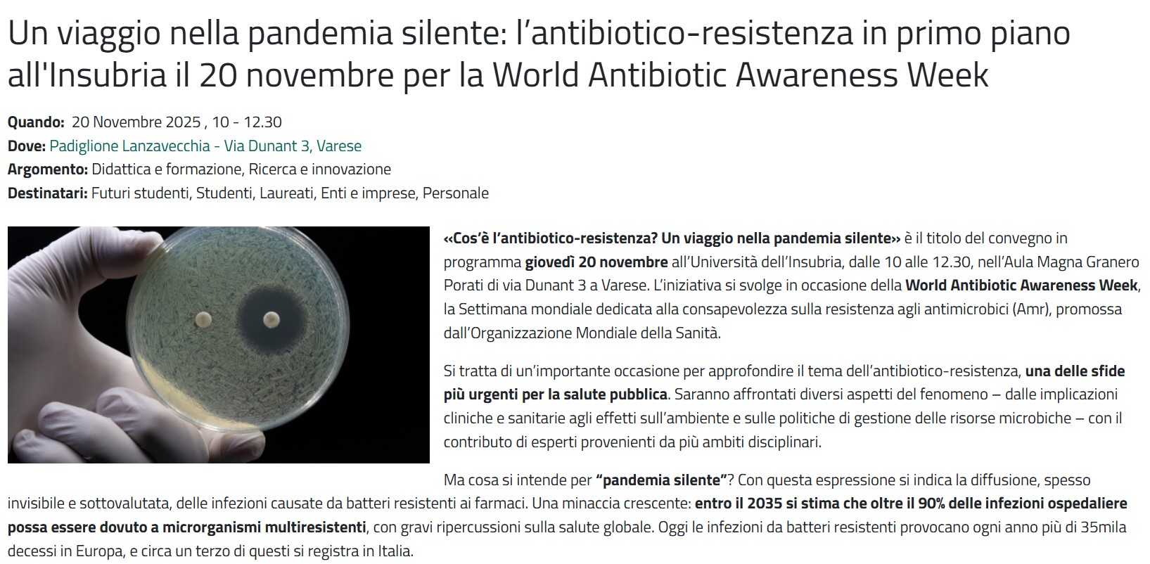 Cos’è L’Antibiotico Resistenza?, 20 Novembre 2025. DBSV, Università degli Studi dell’Insubria