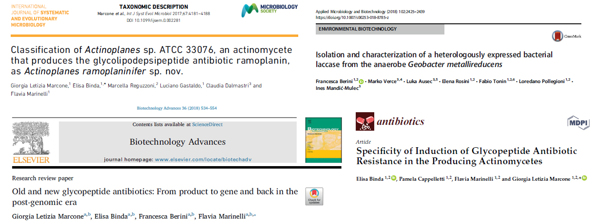 - G.L. Marcone, E. Binda, F. Berini, F. Marinelli. (2018) Old and new glycopeptide antibiotics: From product to gene and back in the post-genomic era. Biotechnol Adv. 36(2):534-554. https//doi: 10.1016/j.biotechadv.2018.02.009.