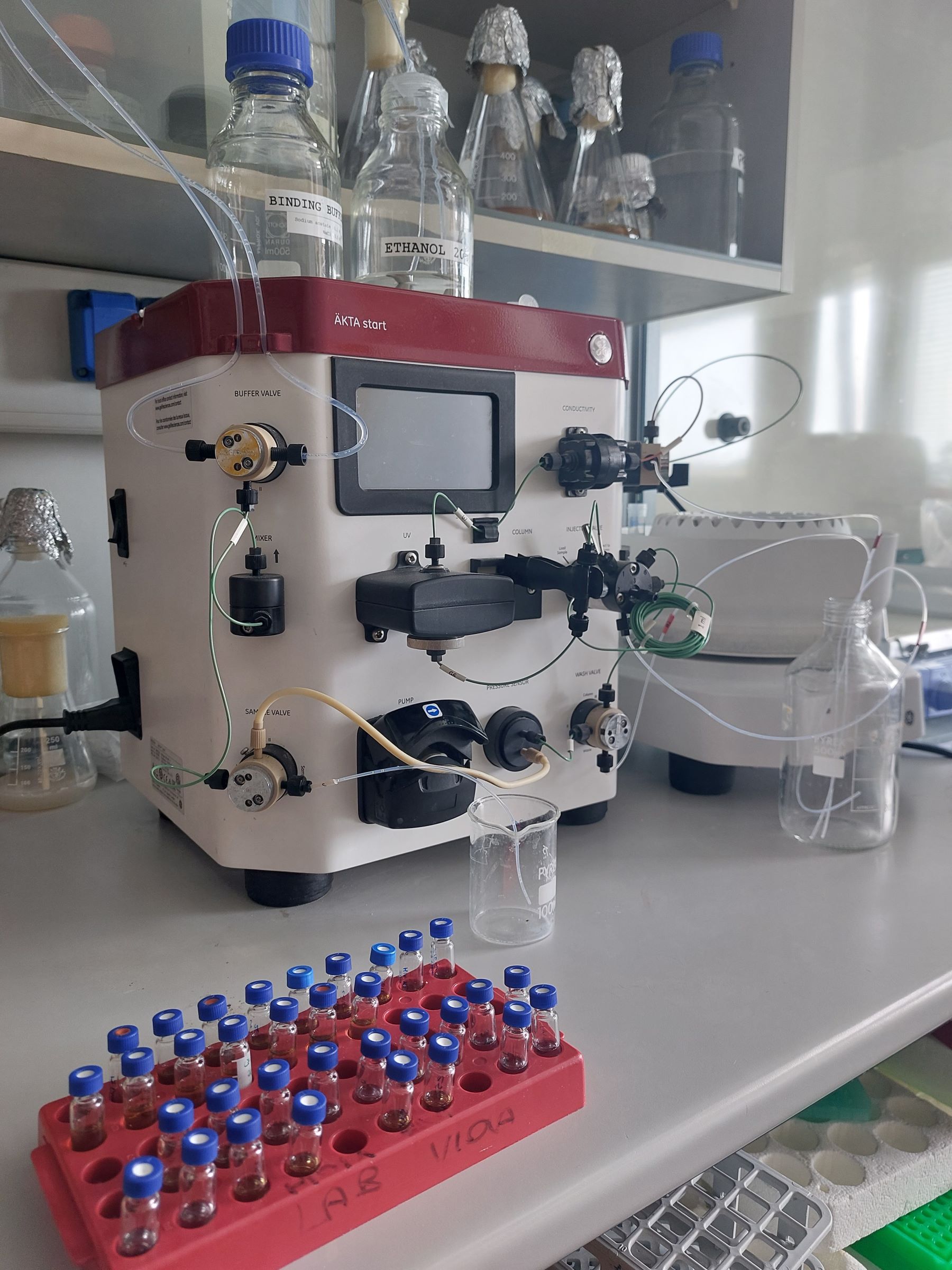 Antibiotic, natural products and heterologous proteins could be analysed and recovered by our Ge Helthcare FPLC system and our 2 VWR HPLC equipped with Diode Array and Refractive Index detectors