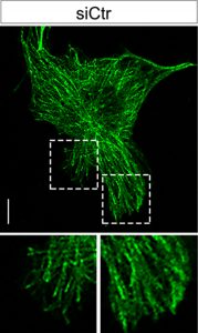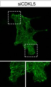• Among the molecular networks regulated by CDKL5, we are investigating its role in controlling cytoskeleton dynamics in proliferating cells and post-mitotic neurons.